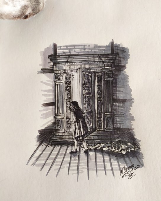 #inktober2021day22 #open ¿Qué serie/película es? Solución: Open = Abrir = Lucy abriendo el armario que la lleva a Narnia = Las Crónicas de Narnia. #inktober2021open #inktober2021 #inktober #ink #inkdrawing #inkart #tinta #lascronicasdenarnia #narnia #armario #inking #art
