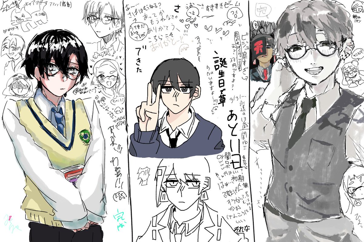 0 2 🍊&🐟&🐔で絵チャ✒ お題は「黒髪イケメン」でした! 皆可愛くておら死ぬ #絵チャ #イラスト 🐟@ninzingirai447 🐔@331bananaore 23/03/20 01:33