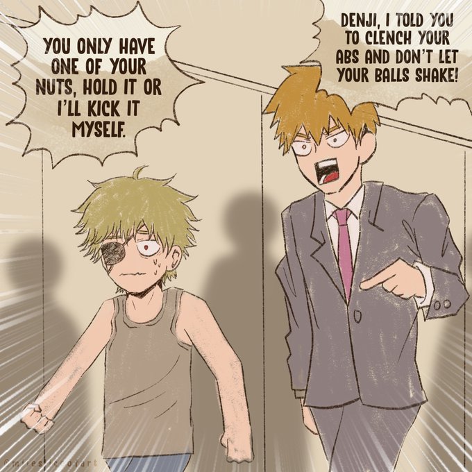 Recreate the reigen and mob going to the bathroom omake but in a AU where its denji!! 😭 #chainsawman #mobpsycho100 #fanart twitter.com/cookingbatter/…