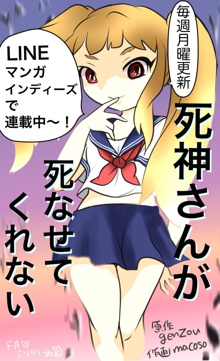 原作@genZou__ & 作画@macoso9 LINEマンガ 「死神さんが死なせてくれない」 スキマ時間に!通勤通学にピッタリ☺✨ファンアート描きました! やるせない毎日に胸キュンを! twitter.com/linemanga_indi…