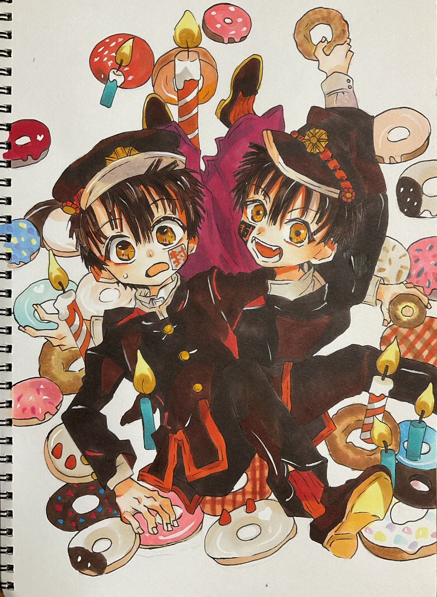 地縛少年花子くん模写しました。ドーナッツが雑なのは許してください。 #地縛少年花子くん #模写 #イラスト
