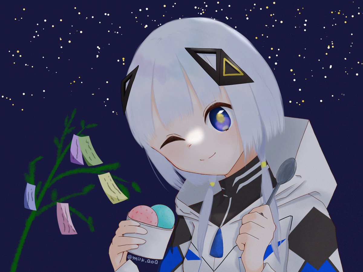 可不ちゃん1周年&七夕🎋 可不ちゃんの2つ結びを描き忘れていることに気がついたので修正しました。 #可不 #可不美術部