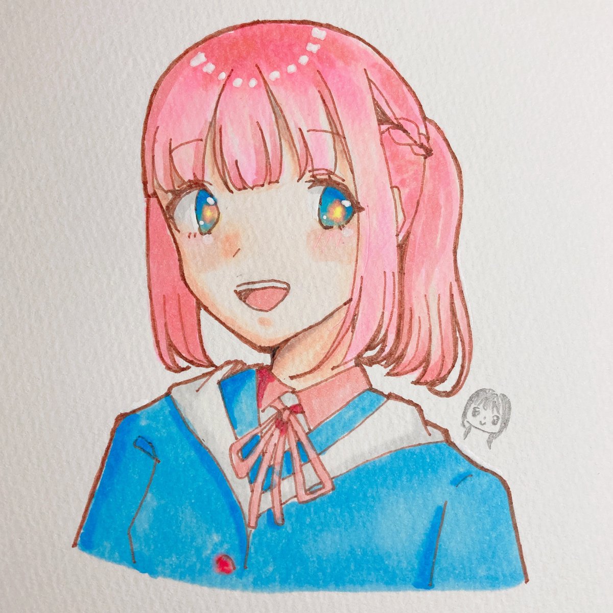 久しぶりのアナログ! 滲んだり、色数なくてリボンが... #花譜 #花譜美術部