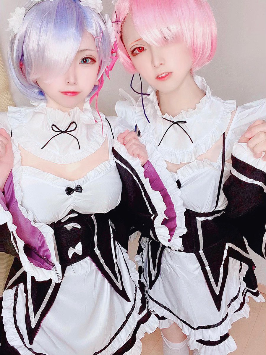 ⚠️宅コス⚠️ Re:ゼロから始める異世界生活 レム♡ラム 可愛い女の子キャラやった事無さすぎて難しい🥺🥺 強めなレムラムになってしまいました🤔 #コスプレイヤーさんと繋がりたい #リゼロ #レムラム #レムラムコスプレ #強めな女の子になった #宅コス