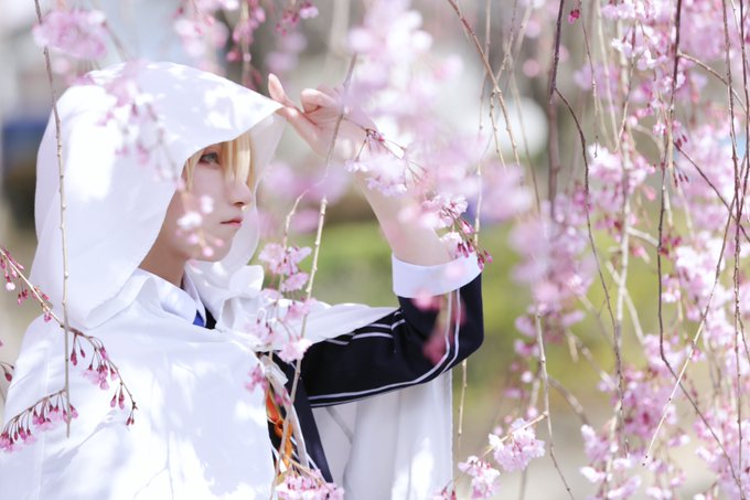 1 2 cos / 刀剣乱舞 山姥切国広 桜花 咲きかも散ると 見るまでに 誰れかもここに 見えて散り行く photo @miyapolis 23/04/17 20:00