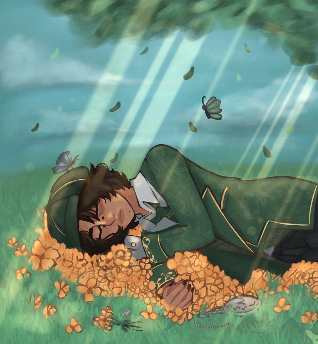 15 53 I never do actual backgrounds so sorry if it's not that great- Anyways small little tiny thing of an au I have for clarity and troubadour :)) #idv #IdentityV #identityVイラスト #NaibSubedar #NortonCampbell 22/08/25 12:29