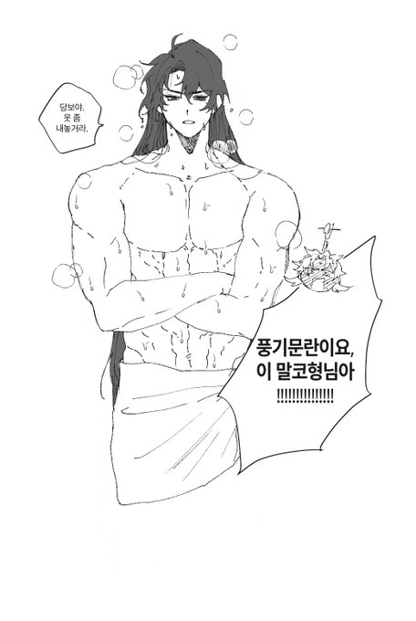 480 2033 약간의 당청? 당가에서 씻고 나왔는데 옷이 없어서 곤란한 검존.... 그래도 아랫도리는 가리고 나왔는데 혼나버림 23/08/01 14:30