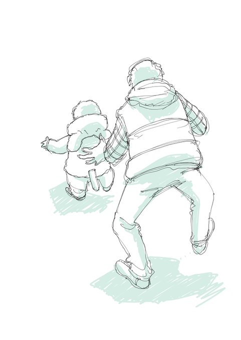 9 23 何となくiPadで見たものクロッキー。お父さんは子供を追いかける時なんで同じ走り方しちゃうのかな。それじゃあ追いつけない 19/02/07 18:23