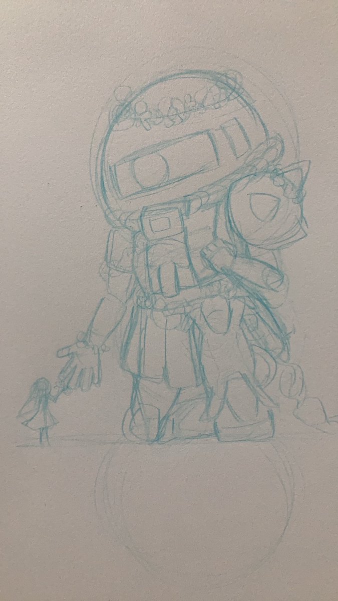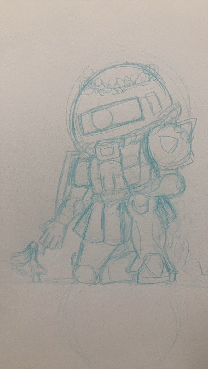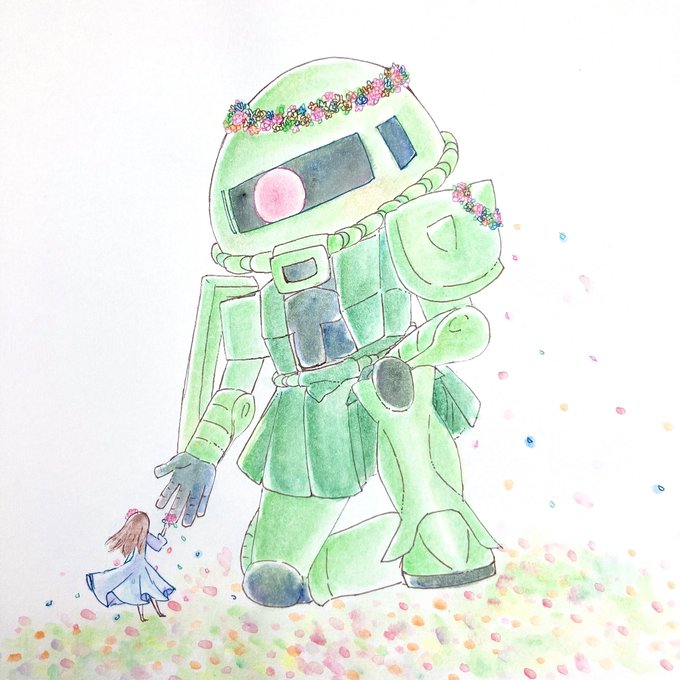 だいぶ良い色にできました🥰 あとは背景に色塗ったりシール貼ったりしたいな〜🌸 乾くの待って塗るのがいつもできなくて、ついつい重ねちゃってたのを、ゆっくり時間をかけて塗れてるのでいつもより色味が多めに出せてる感じする!すき(‷ˊᗜˋ‷) #ククルス・ドアンの島 #ザク #お絵描き #イラスト