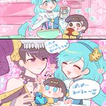 #遠ちかワンドロ ワンドロ開催おめでとうございます!!ありがとうございます!!遠ちか様といちから大好きです💜💙💜💙 時間overOKとのお言葉に甘えさせていただきました…! ハデスいちまつくんと魔法少女からまつちゃん♂が結婚して子育てしているパロのバレンタイン描きました🫕🍫🐬