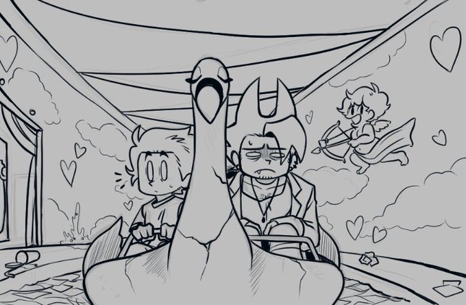 have a wip i kinda tidied up and shaded, before i disappear for the rest of the day lol #picosschool #damien #otis #otisxdamien #wipart