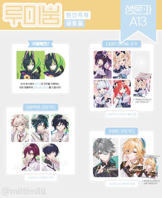 [RT💛] 원신 여름축제 인포입니다! 🌿생론파 A-13✨루미붐✨(금.토.일 참가) 🔗cafe.naver.com/genshin/4584460 일부 굿즈 선입금예약 진행 중입니다! 추가 공지는 타래 확인 부탁드립니다~!