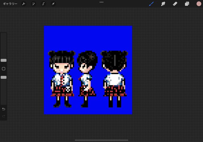 写真集発売記念に昔のpcゲームっぽいドット絵でまなかん描いてみた。2枚目はブラウン管っぽく加工。 #juicejuice #稲場愛香