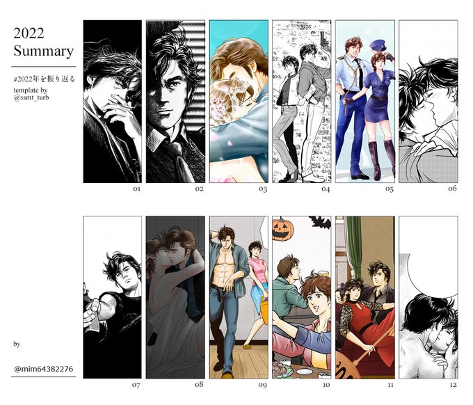 素敵なテンプレをありがとうございます 今年も色々描いたな 因みに昨年のは固定ツイにしていますので 宜しければみてくださいね そして12月の絵は、次回最終回の予告となります #2022年の絵を振り返る