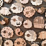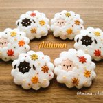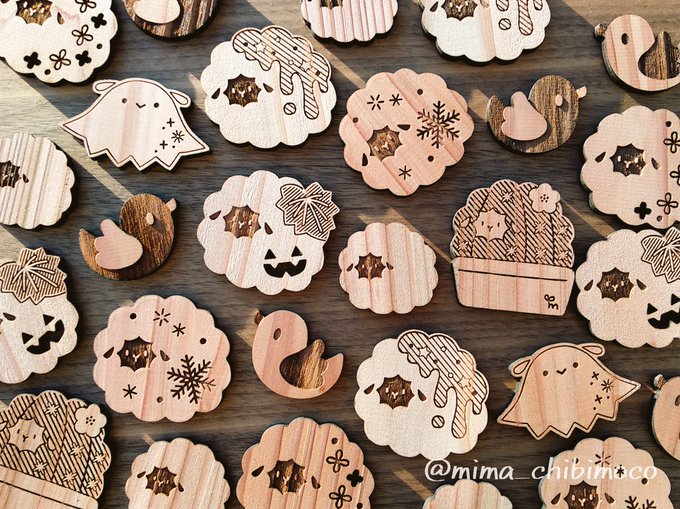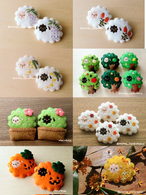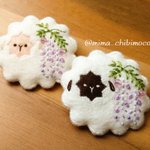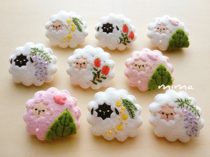 #11月になったのでフォロワーさんに自己紹介しようぜ シートフェルトで、ちっちゃくてもこもこした羊 #ちびもこ さんのブローチを中心に製作しています🪡🧵 イラストからの雑貨類は、本業に因んだものもあります🍑