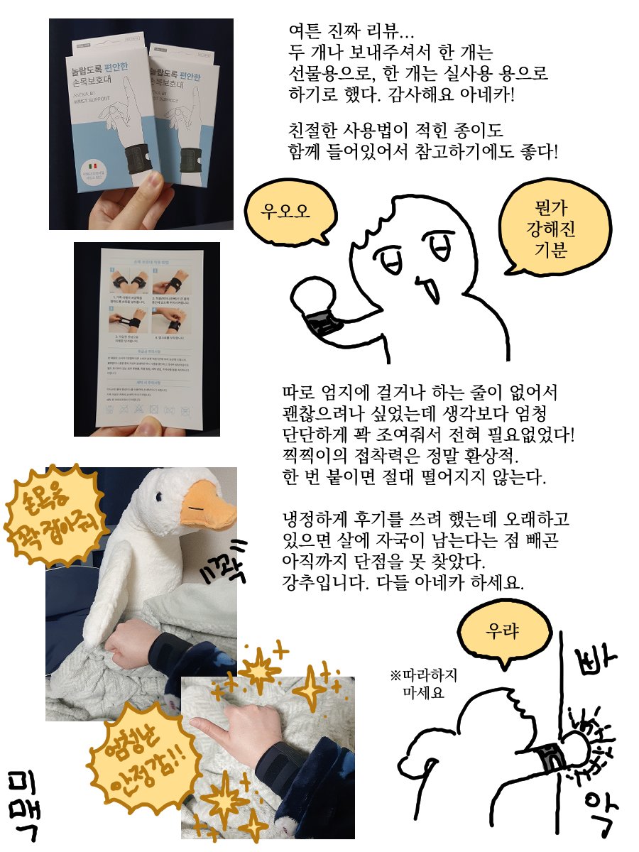 46 42 아네카에서(@aneka_twt) 손목보호대를 보내주셨습니다! 손목이 뻐근하신 분들께 강추! #아네카손목보호대 23/03/27 14:02
