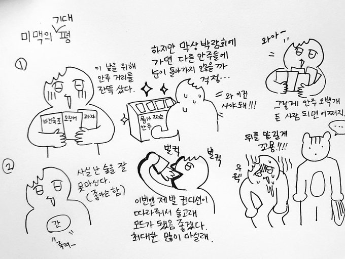 주류 박람회 가기 전에... 친구랑 잔뜩 들떠서 공책에 기대평을 그려봤다. twitter.com/mimac1010_dail…