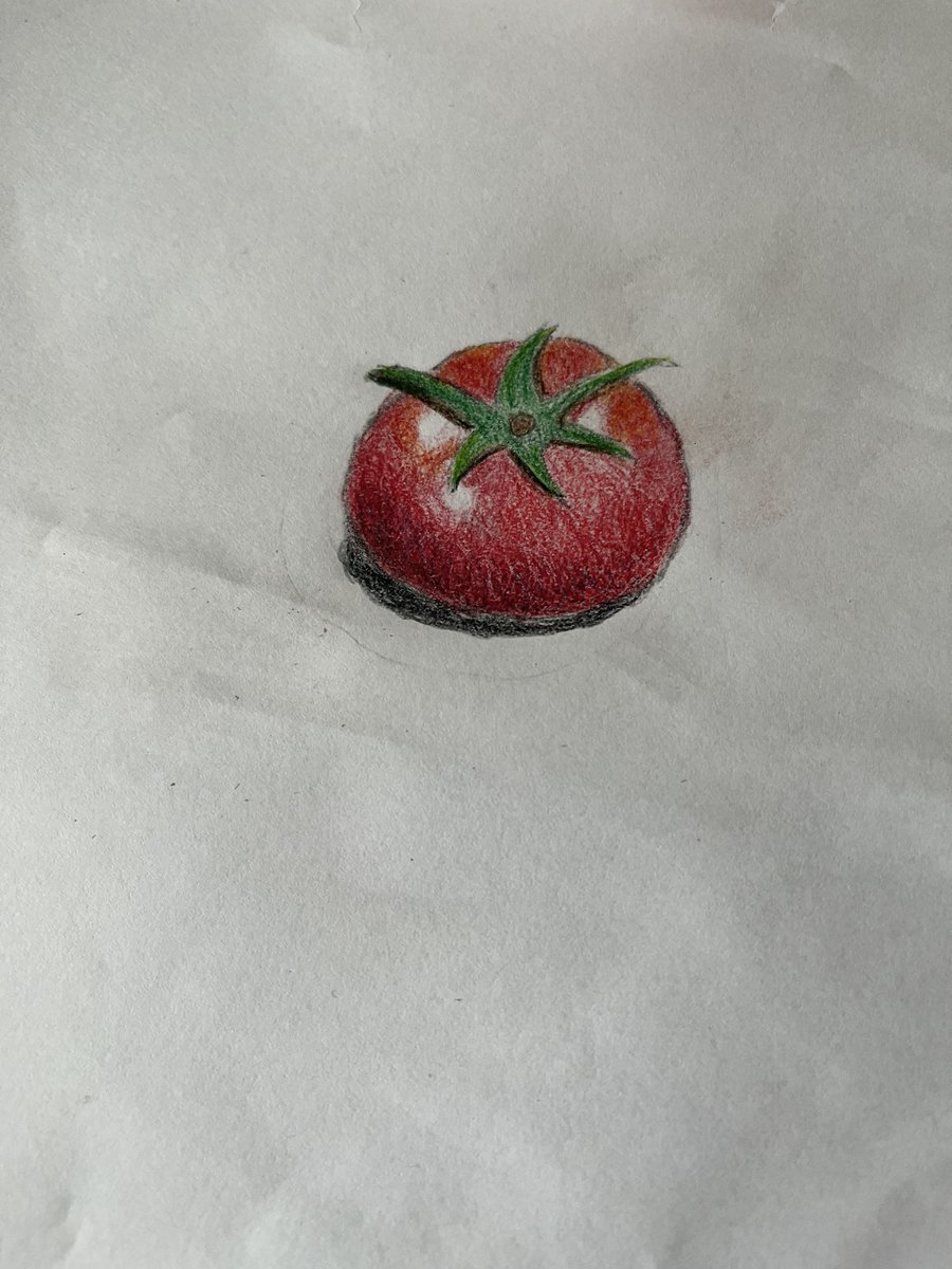 0 2 zoom色鉛筆画教室で描きました 絵なんてほとんど描いたことないです 右は先生指導のもと 左は自分で 絵本の挿絵みたいなプチトマトができて満足です #色鉛筆画 22/03/20 16:01