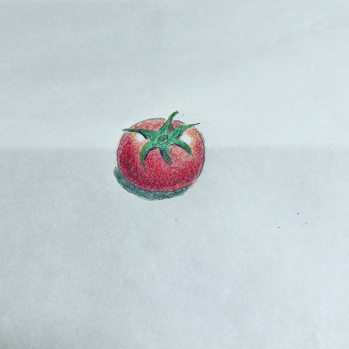 zoom色鉛筆画教室で描きました 絵なんてほとんど描いたことないです 右は先生指導のもと 左は自分で 絵本の挿絵みたいなプチトマトができて満足です #色鉛筆画