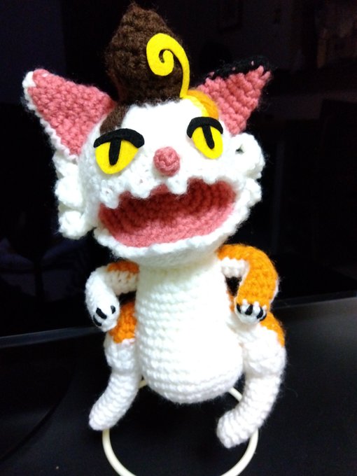 皆さん、いいねを ありがとにゃ♪ 後ろ姿を 追加載せました。 お耳や手足、しっぽは 針金入ってるから 曲がり ほっぺのくるんとした 毛のカールが チャームポイントです。 #キャラスト5周年 #ファンアート #バケネコ #あみぐるみ