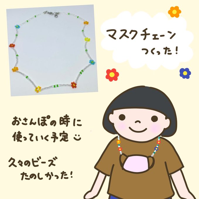 【絵日記】 ビーズでマスクチェーンを作りました🌼 久々のビーズアクセサリー楽しかった☺️ いくつか作って販売しようかな🤔 #絵日記 #イラスト #illustration #絵 #コミックエッセイ #らくがき #エッセイ #イラストエッセイ #手描き #ゆるいイラスト #お絵描き #art #drawing