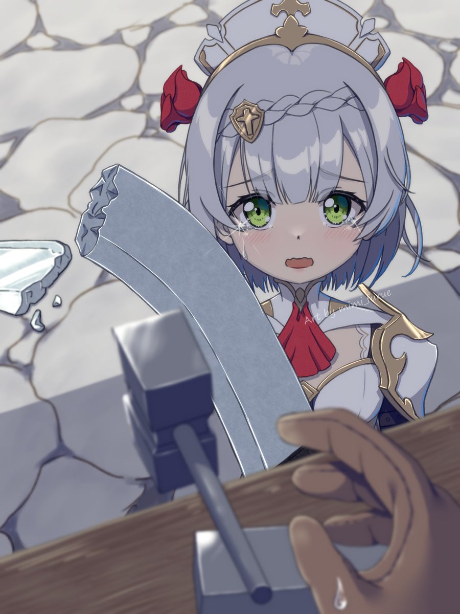 「申し訳ありません、ワーグナー様……」 「なっ……!?」 ということで、先日のアンケートを参考に、幼女ノエルちゃんがワーグナーの新作長剣を鉄塊に変えてしまった例のストーリーを描きました~ ノエルちゃん、お誕生日おめでとう!! #ノエル生誕祭2023 #原神