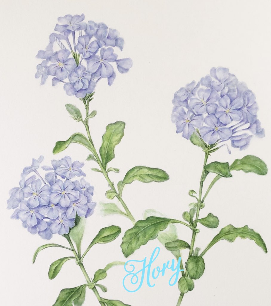 ルリマツリ 爽やかな色合いが好きです✨ #ルリマツリ(プルンバーゴ) <イソマツ科> #ボタニカルアート #水彩画 #植物画 #花 #イラスト