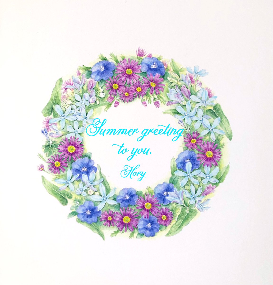 1 50 どツボにハマってたので、なかなかupできなかった❗️ 反省点がいろいろあるけど 次に生かしたいです✨ #ブラキカムブラスト #ブルースター #エボルブルスブルーラグーン #ボタニカルアート #水彩画 #植物画 #花 #イラスト #リース 21/08/04 13:59