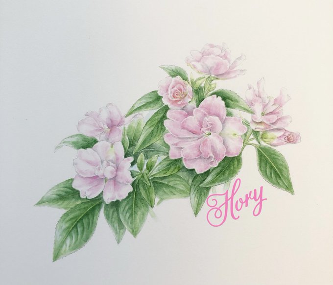 3 72 ニューギニアインパチェンス ワイルドロマンス <ツリフネソウ科> 雨が☂️止まらないですね💦 暑すぎるのはそれはそれで大変だけど、日差しが恋しいなあ😅 #インパチェンス #ボタニカルアート #植物画 #水彩画 #花 #イラスト 21/08/15 10:06
