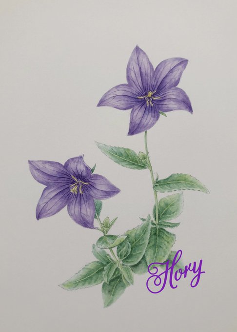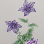 2 77 キキョウ <キキョウ科> 初めて クサカベのパーマネントバイオレットを使ってみました😊 濃くなり過ぎないように、涼しげな感じを目指してみました✨ #キキョウ #ボタニカルアート #水彩画 #植物画 #花 #イラスト 21/08/26 11:18