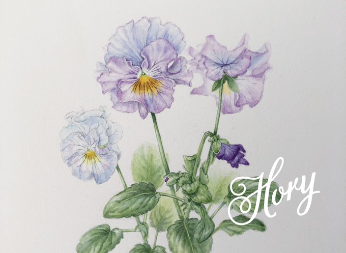 フリフリパンジー ふんわりフリルを表現できたかな? ついつい好きな葉っぱに力を入れてしまう😅 #フリフリパンジー #ボタニカルアート #植物画 #水彩画 #花 #イラスト