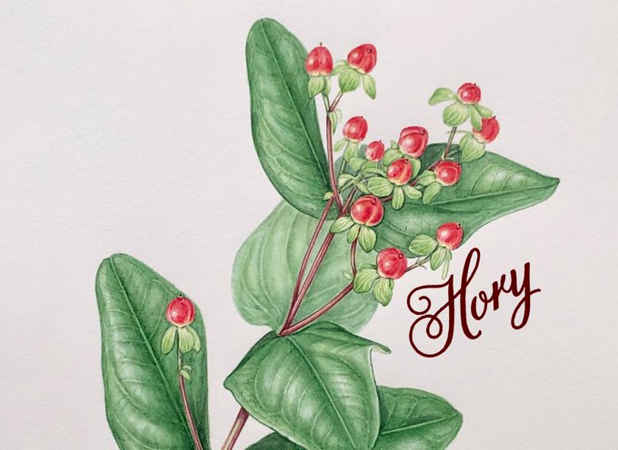 0 76 ヒペリカム (オトギリソウ科) 赤い実が可愛い💖 クリスマスっぽい植物はテンション上がりますね✨ #ヒペリカム #ボタニカルアート #水彩画 #植物画 #イラスト 20/11/28 09:46