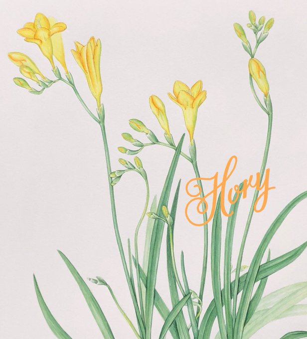 3 91 フリージア (アヤメ科) あけましておめでとうございます。 本年もよろしくお願いします❗️ ここで見ていただける事で 励みになってます✨ #フリージア #ボタニカルアート #水彩画 #植物画 #花 #イラスト 21/01/02 21:58