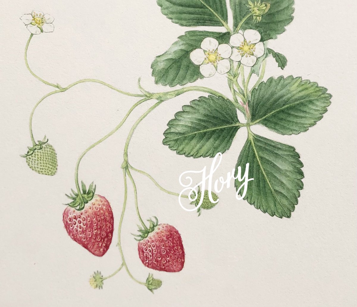 イチゴ よつぼし (バラ科) 途中かなり迷走しました💦 一応描けたって事にしておきます❗️ やっぱ塗り絵状態の時が1番楽しかった😅 #イチゴ #ボタニカルアート #水彩画 #植物画 #イラスト