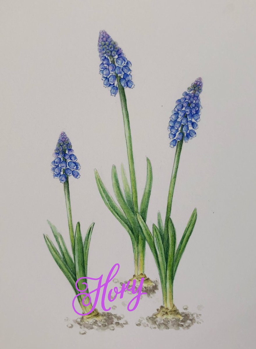 ムスカリ <キジカクシ科> ずっと描きたいと思ってたんです✨ 老眼との戦いだったけど 嬉しい😊 #ムスカリ #ボタニカルアート #植物画 #水彩画 #花 #イラスト