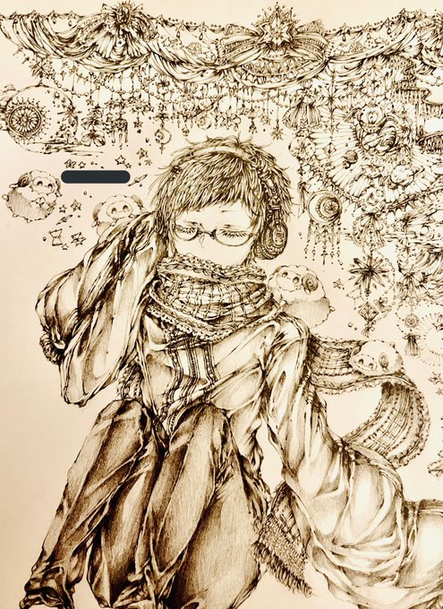 今年1頑張ったのとお気に入りのアナログイラストです!✍️ 実は載せてる以外のお誕生日などの別のイラストも描いてました!✨ 来年も細かいイラスト描いていきたいです!(ง •̀ω•́)ง✧✨ #絵描きさんと繋がりたい #創作クラスタさんと繋がりたい #アナログイラスト