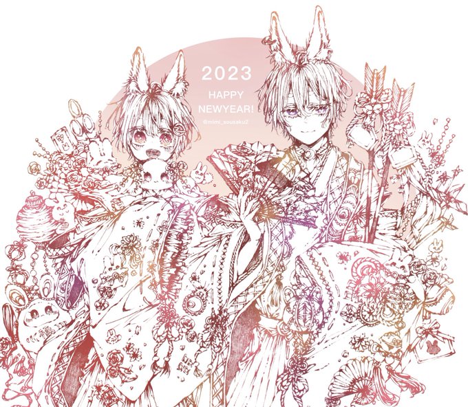 夜ギリギリになってしまいましたが、 あけましておめでとうございます!🎍✨ 今年は卯年なので、兎のオリキャラを描きました!🐰🐇 2023年もオリキャラや沢山のイラストを描いていきます! よろしくお願いします!!✨ #絵描きさんと繋がりたい #創作クラスタさんと繋がりたい #正月イラスト