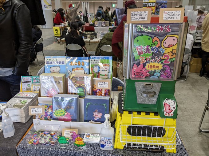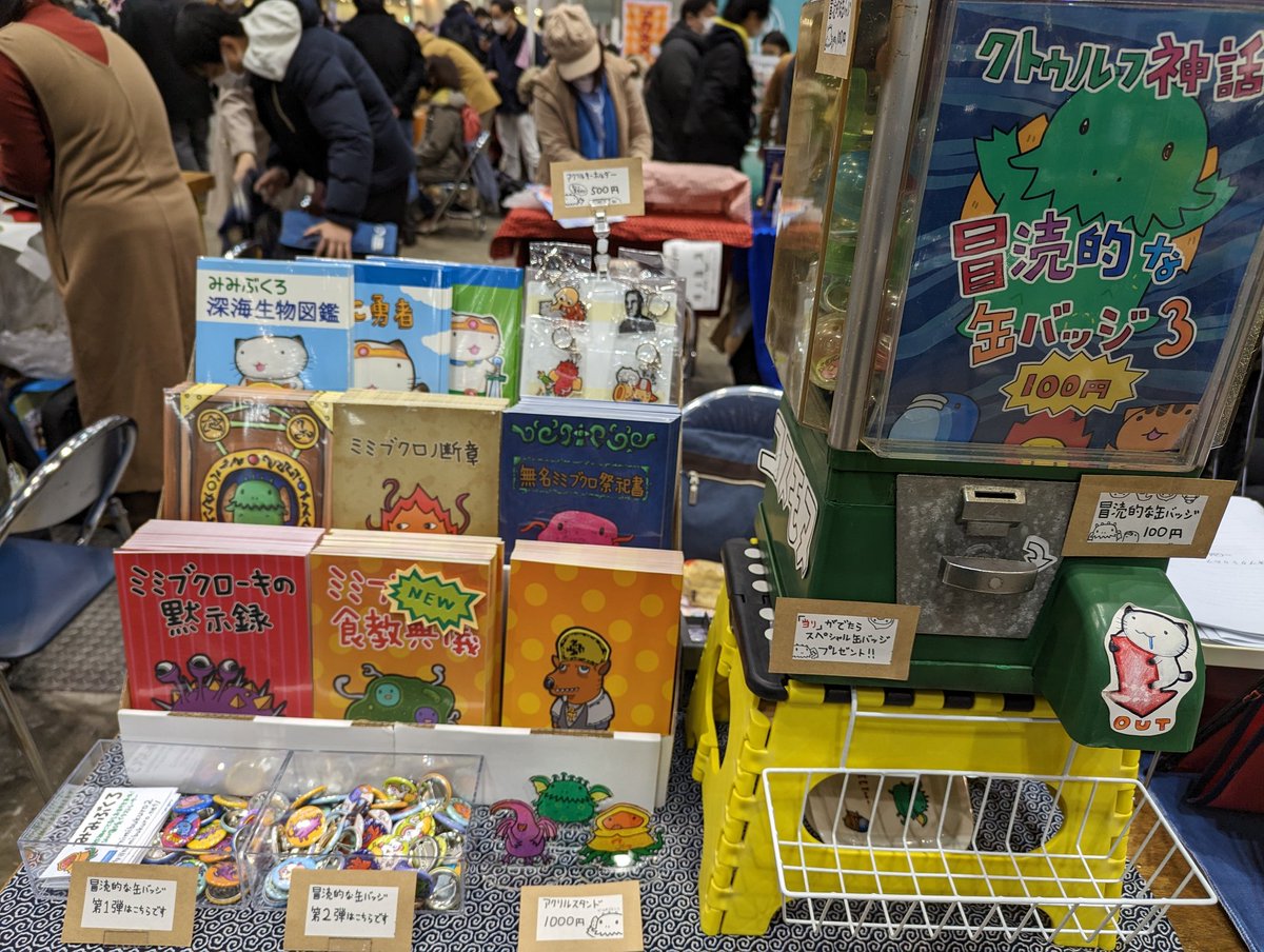 5 4 本日の販売物! ガチャガチャ冒涜的な缶バッジ第三弾!100円! #C101 #コミケ #クトゥルフ 22/12/30 09:35