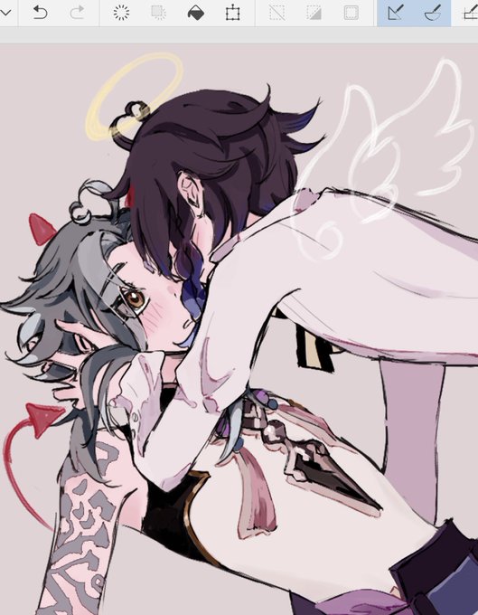 xiaoven WIP angel demon au or sth aaa i love em #xiaoven #xiao #venti #GenshinImapct #genshintwt #genshinimpactfanart #fanart #wip