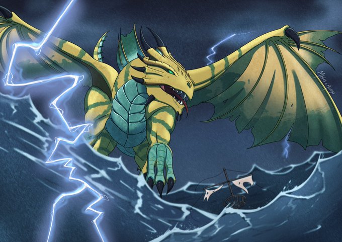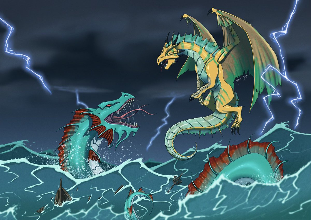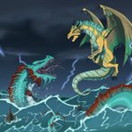 Ocean swelling, wings beating, lightning charging, serpent rising #dnd #dungeonsanddragons #dndart