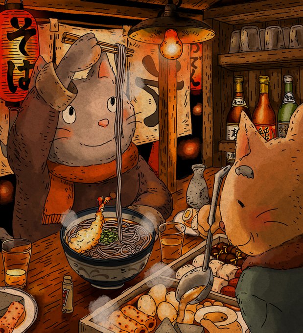 #イラスト好きさんと繋がりたい #みんなで楽しむTwitter展覧会 年越しそば☺️🍜今年最後のイラストです✨ 一年間、絵を見て下さりありがとうございました🙏 よいお年をお迎えください。