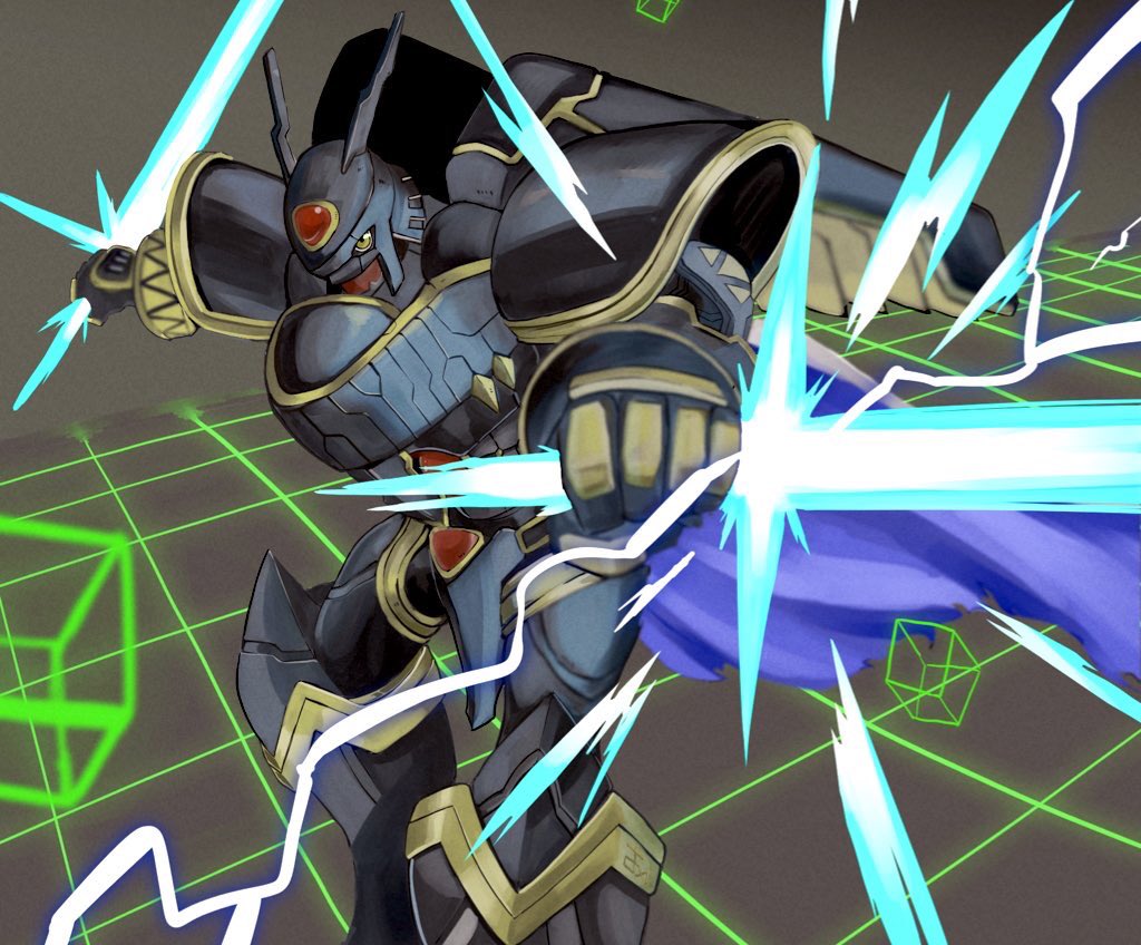 17 54 煮こごりスーパーカッコイイ(@moguru_taberu )さんからスーパーカッコイイラフを頂いたので描きました!! 逃げて〜〜!! #Digimon 22/10/31 23:43