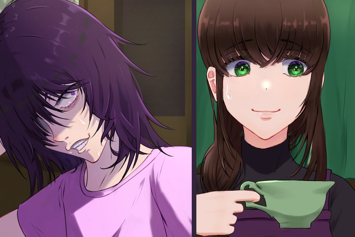 #絵柄変化ビフォーアフター ←2022年2月22日☆2023年5月12日→ 【変わった所】 ハイライトの入れ方! 髪の束の流動性! 眼球が縦長から、丸目になった。 鼻筋の主張が低下 して絵柄変わったぞ!
