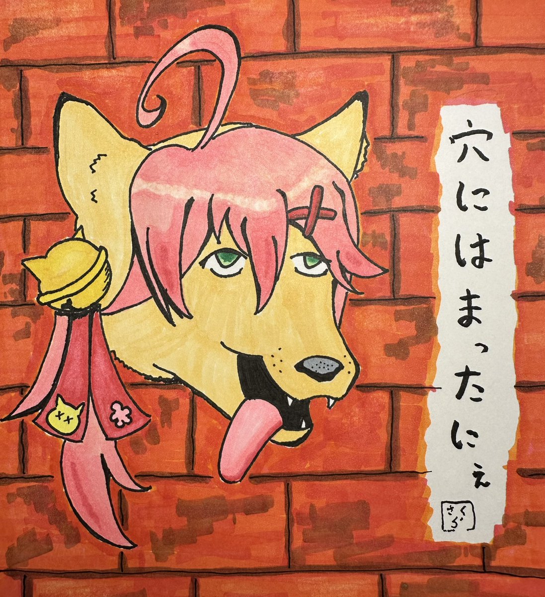 やっとできた! 壁の穴に顔を入れたら抜けないなった さくらみこ(犬)です。 最初は柵にする予定だったけど、レンガの壁が1番しっくりきたので変えました。 レンガも柵も難しい #miko_Art #ホロライブ