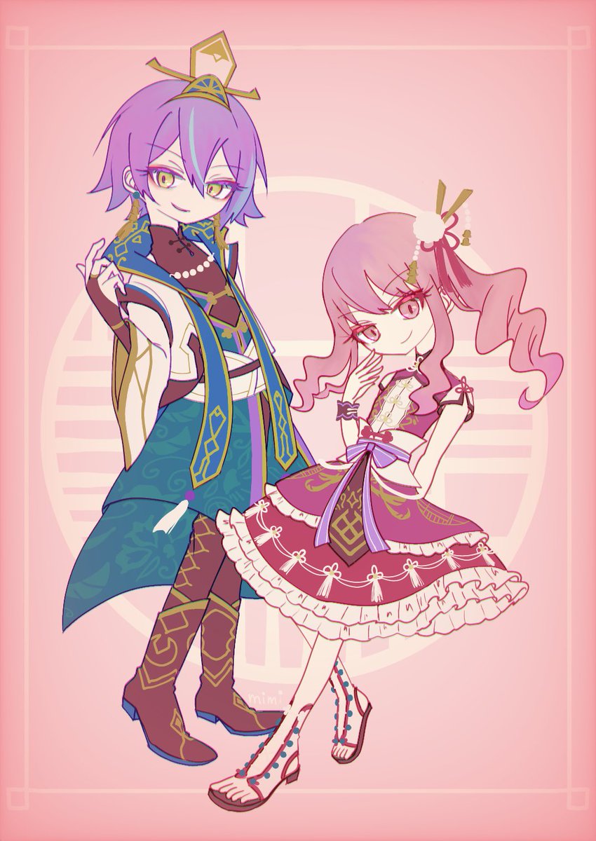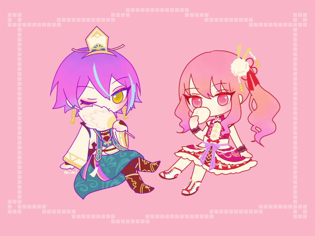 屋上組イベ+お揃いチャイナ衣装ありがとう🌸🎈🎀 #prsk_FA 類 瑞希