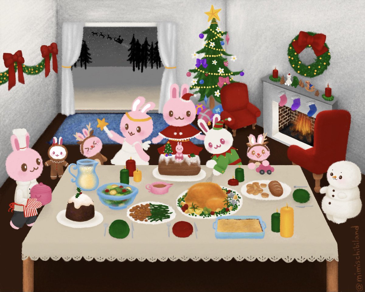 みんなとクリスマスパーティー🎄✨ #しろたん #うさもも #うさももちゃん #ちびもも #メリークリスマス #christmas #イラスト