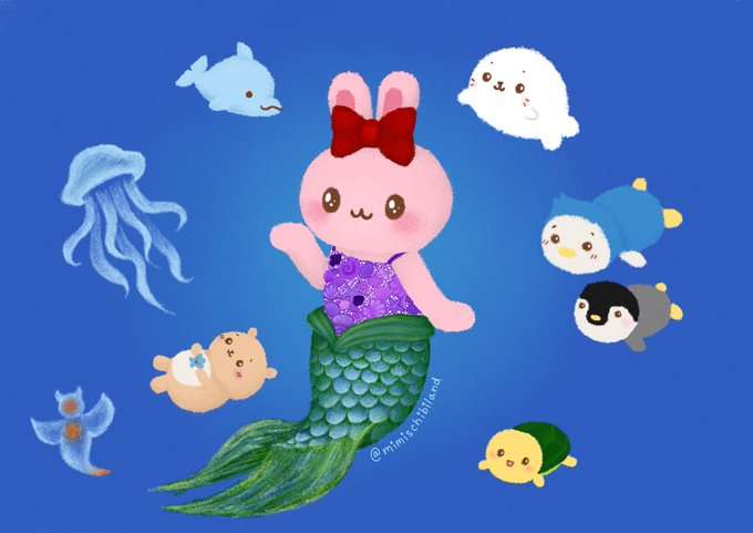 ️🪼🐚🦀リトル・マーモモ🐠🧜♀⚓️ #うさももちゃん #イラスト