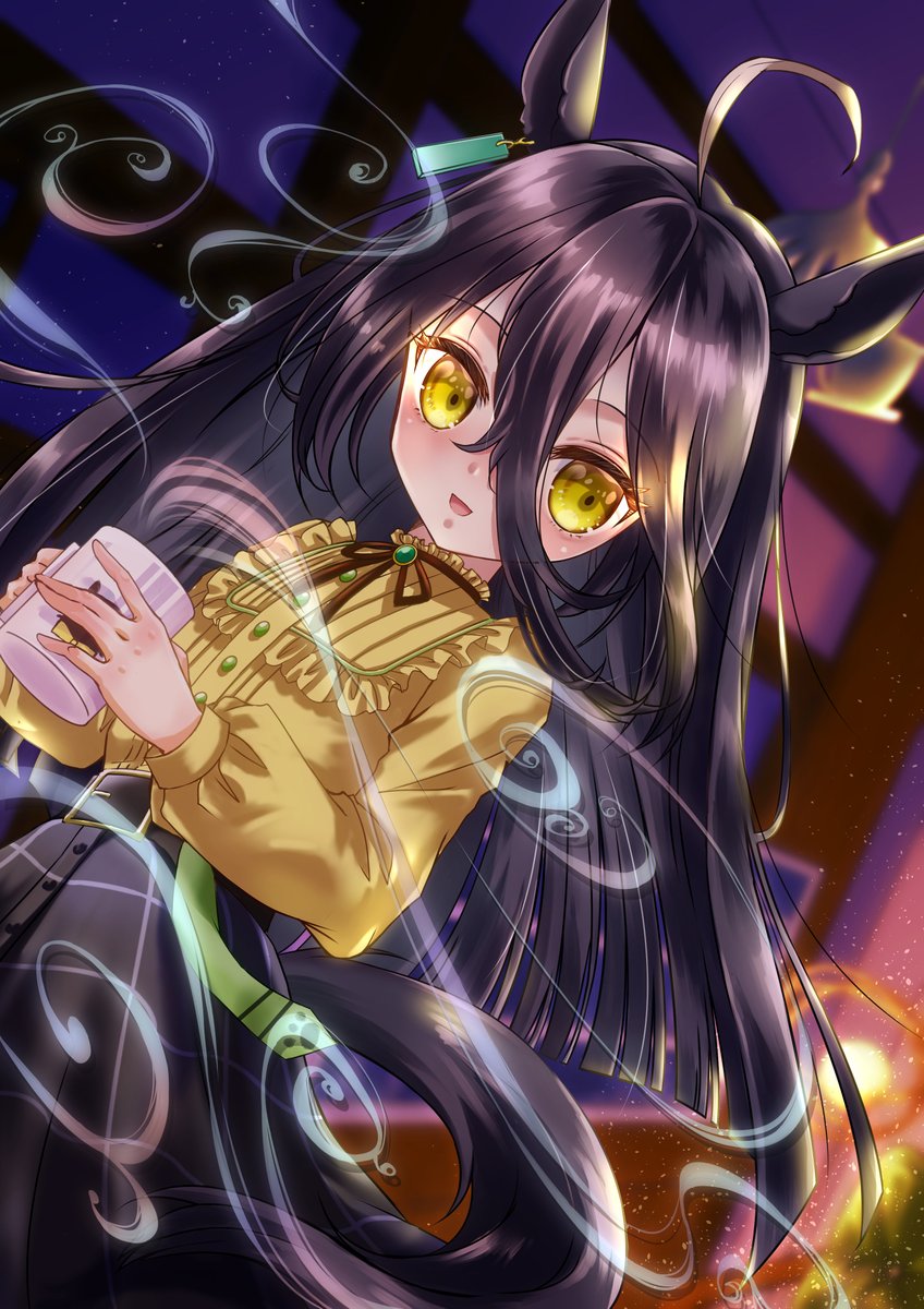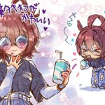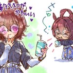 遅くなったけどカフェお誕生日おめでとう🎉🎊🎁🎂☕ 昨年のお誕絵修正版🥰 妖しいコーヒー推しカフェと 差分のトレーナーさんからのお祝いでちょっとキラキラしちゃったカフェw #ウマ娘プリティーダービー #マンハッタンカフェ #マンハッタンカフェ生誕祭2023