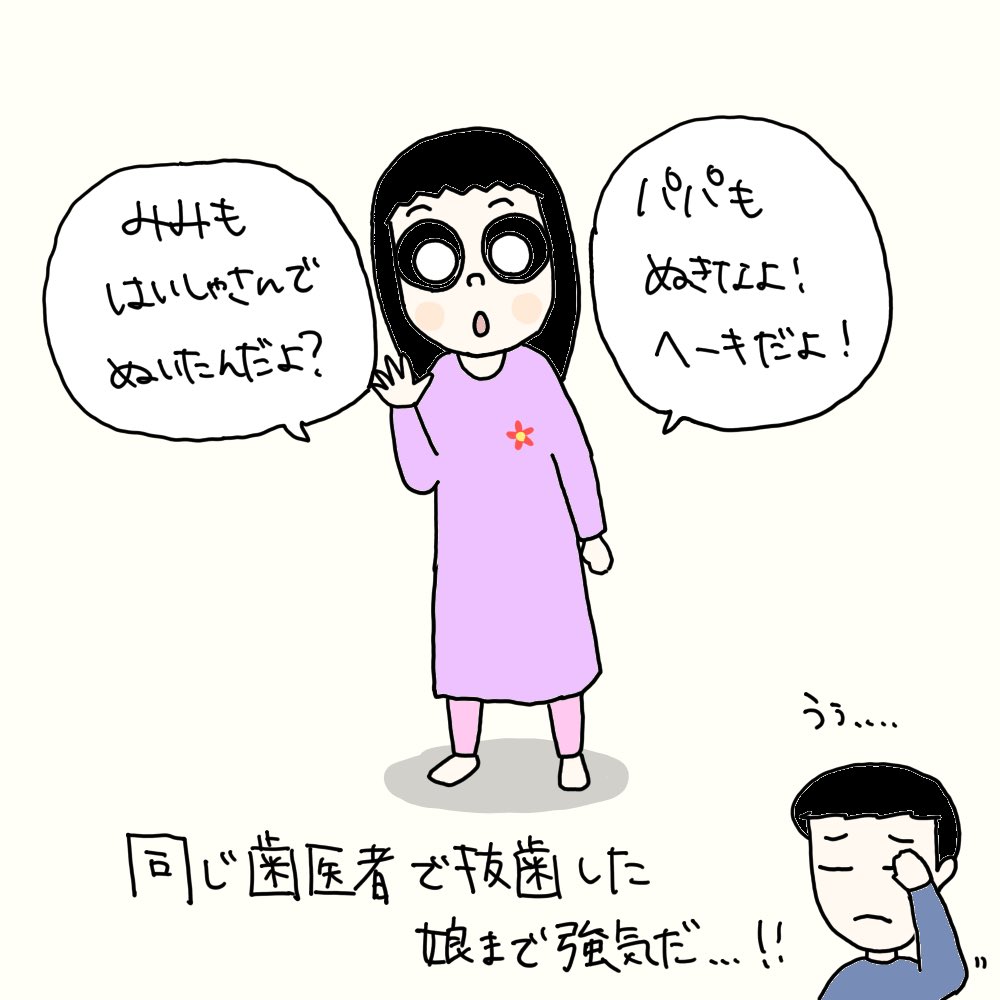 歯医者さんの『抜かないでそのままでも大丈夫だよ、どうしますか?』にも即答で抜くっ!と答えてた5歳児さん。 #育児絵日記 #育児漫画 #イラスト #漫画が読めるハッシュタグ