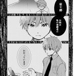 めちゃめちゃ遅刻ですが久しぶりに参加させていただきます…! お題『白衣』 赤&黒「はっぴばーすでぃとうーゆー…」 黄「うれしいけど心臓によくないっス…」 中身は駄菓子屋さんの粉ジュースまぜたやつ 白衣はこの日の二人のラッキーアイテム #深夜の赤黒真剣創作60分一本勝負 @akashi_kroko